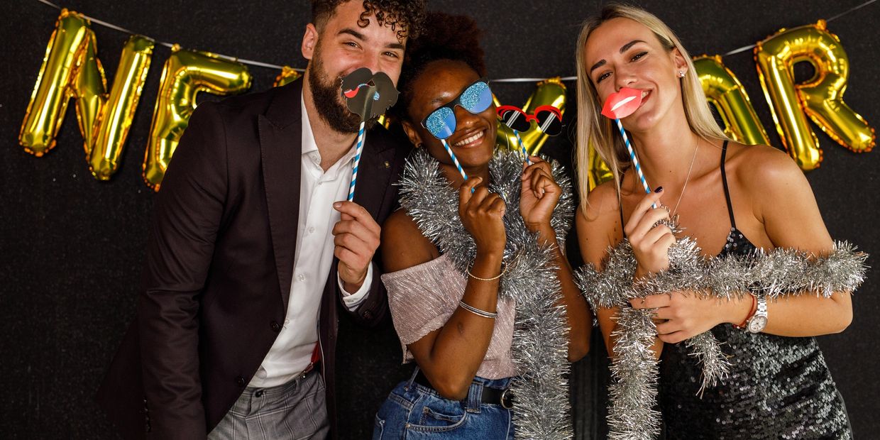Agrega una mesa de accesorios para que tus invitados disfruten al tomarse fotos. Una experiencia divertida para todas las edades.